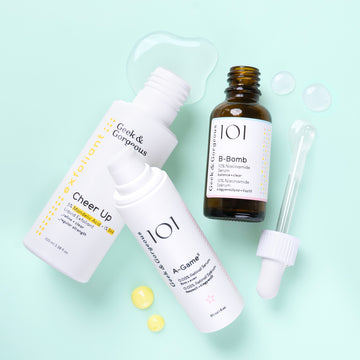 Unsere Bestseller sind C-Glow, ein 15% Askorbinsäure Serum welches wir jede Woche frisch herstellen, und A-Game, ein kostengünstiges RetinAl Serum.